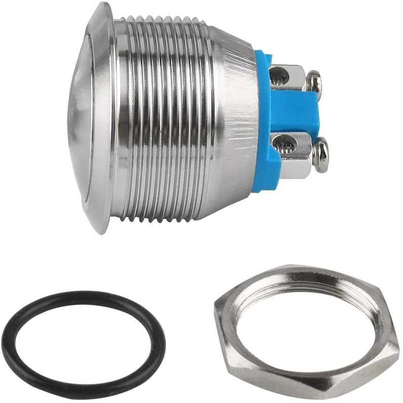 22mm Metal Push Button Switch, On-Off, Tercahaya, Dot LED, Fungsi Momentary, 1NO1NC, 5 Pin